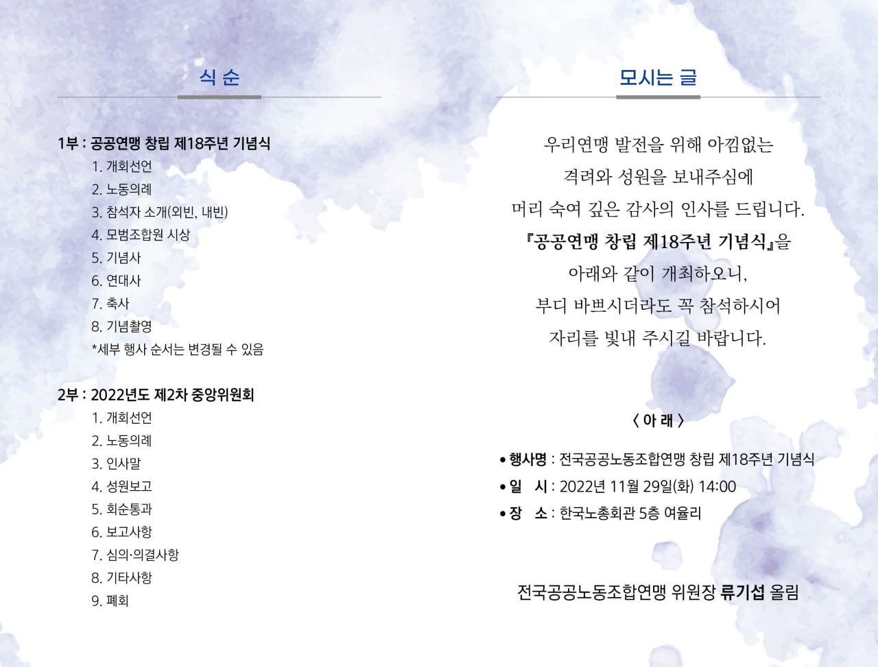 수도권공공서비스노동조합 임원선거 후보자 공약