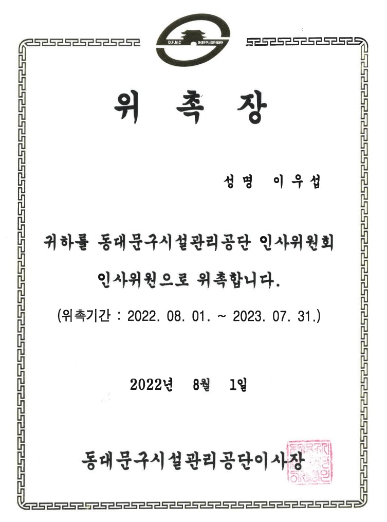 [본조] 이우섭 사무처장 민주평통 성북협의회 청년분과위원장 임명